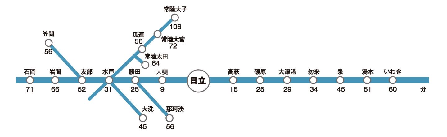 各駅から日立駅までの概算時間