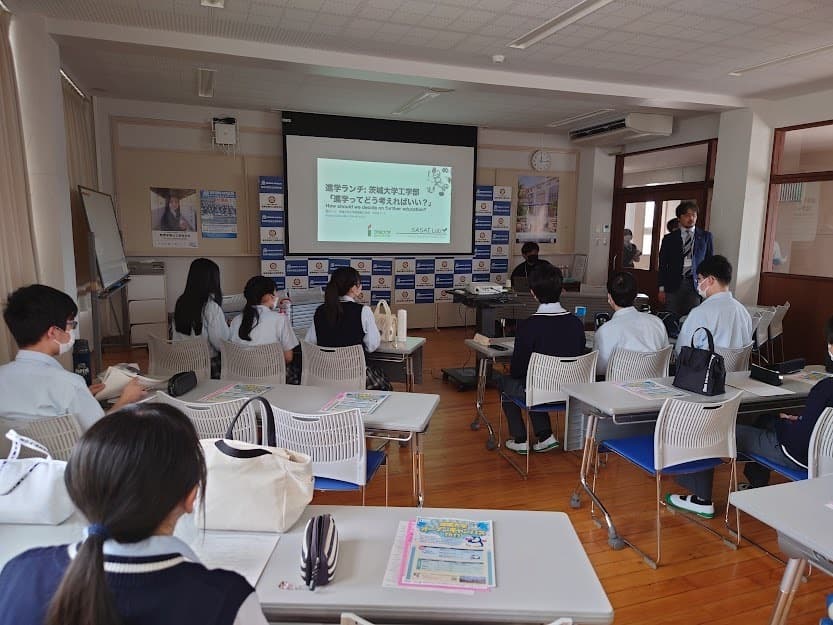 「進学ランチ」とはお昼休みに昼食をとりながら大学の説明会を聴けるという明秀日立独自のイベント。