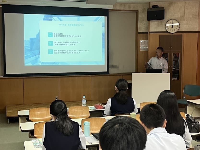 毎年10月に3学年対象に中央大学と法政大学の入試担当の方に「私立大学入試概況と受験ポイント」について講演いただいております。